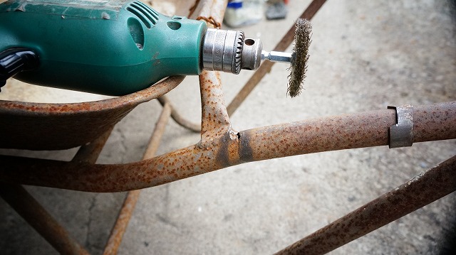 材料の周りは 少しでも錆の無い方が 溶接には いいのかな?… と思い 、錆取りしようと 印を付け 錆取りしました 。