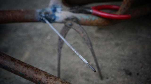 途中で 溶接棒が 何度か くっ付いて しまいました 。
