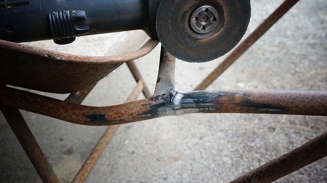 だいたい 溶接できたら 凸凹を 削ってみます 。