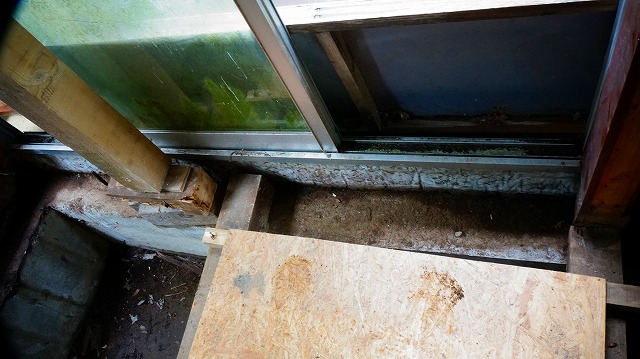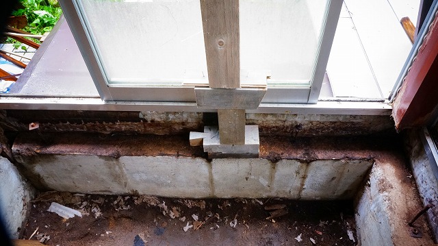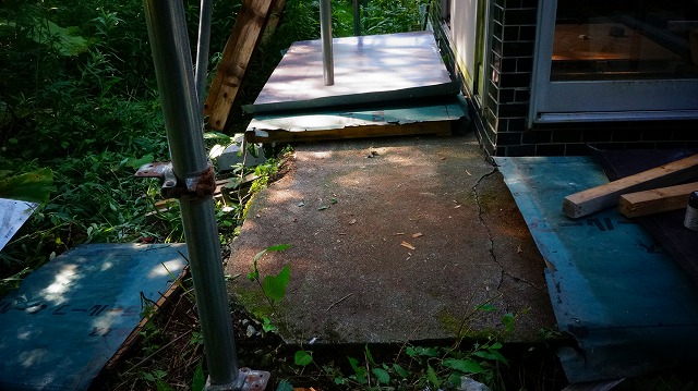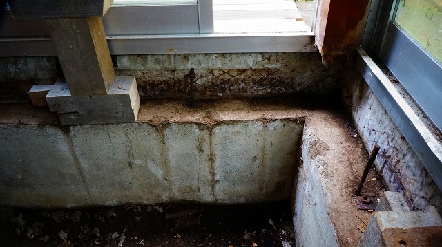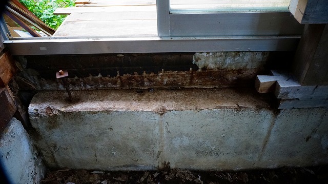 それは 腐った土台が っていた基礎が 雨の掛かるコンクリートの縁側と 一体打ちで
