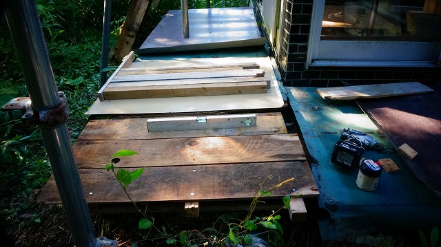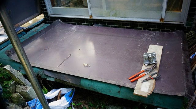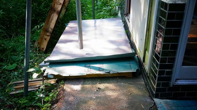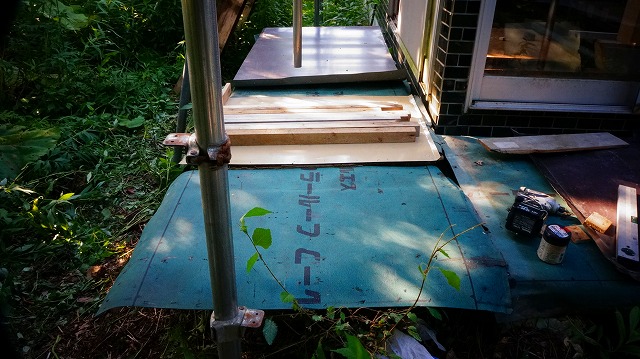 縁側に とりあえず 応急処置的な 防水処置 というか 「屋根」というか「雨よけ」を 架けます 。