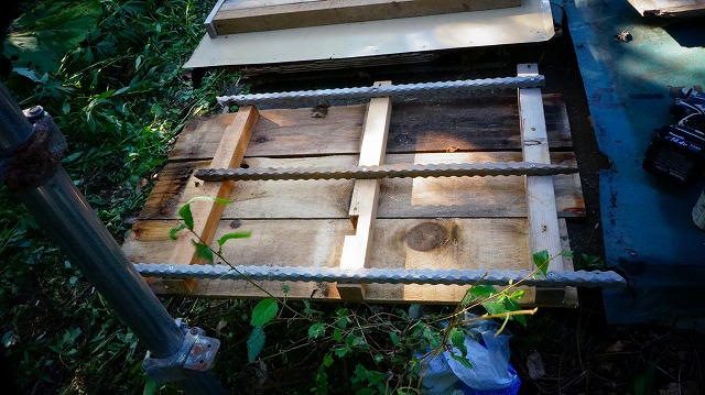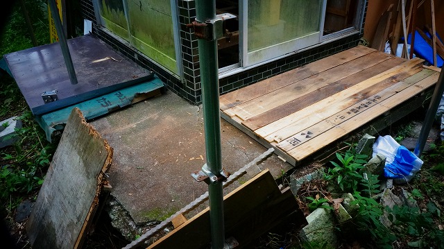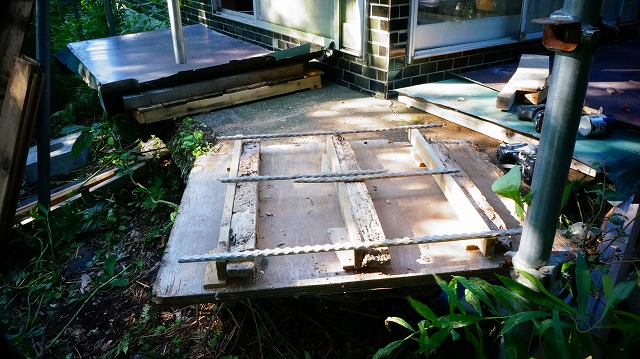 建物から 外した廃材などで できるだけ加工せず 、撤去も楽なものになるよう 成り行きで作っていきます 。