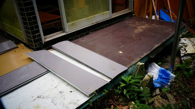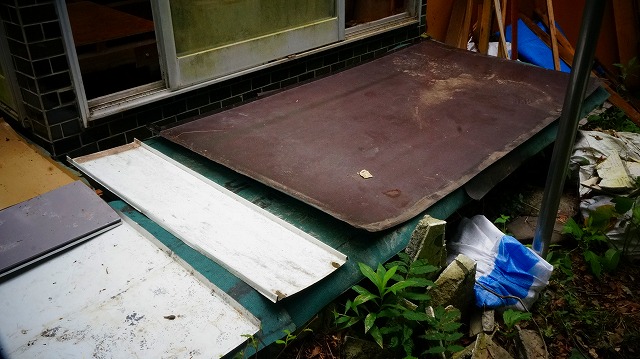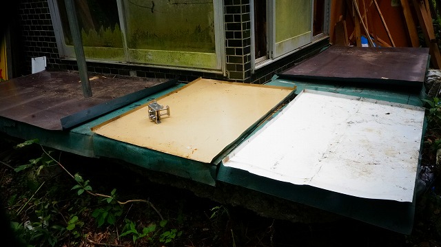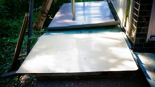 縁側に スノコを 敷いて その上に 防水シート 、カラートタン板を 置く というものです 。