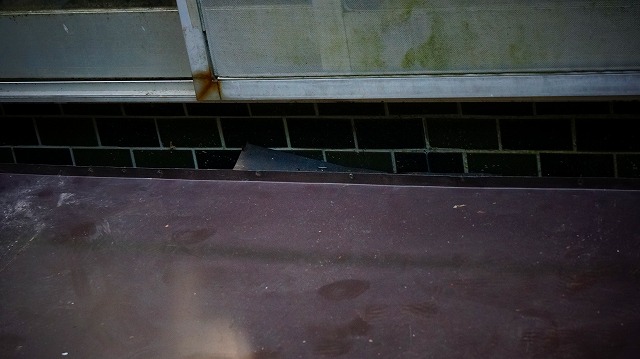 雨がやんで 二日くらいしてからですが 、雨よけを よけて 縁側のコンクリートが 濡れているか 見てみました 。