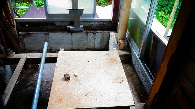 柱が 腐る 、その下部が腐る ということは 土台も さらに ひどく 腐っている…というわけで 、いま手掛けているものは 、跡形もなく ほぼ土になって おりました 。