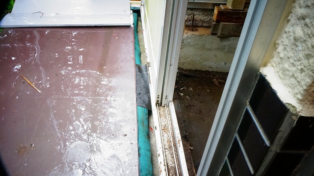 雨よけと建物は 少し離してあるのに加え 、縁側と 窓下の少し立ち上がっている壁の間に 目視でわかるすき間があり 、風向きによって 雨が 入ったのではないか?と思います 。