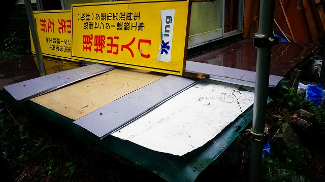 屋外の雨よけを 少しバラして 下の方が 濡れているかどうか 見てみます 。