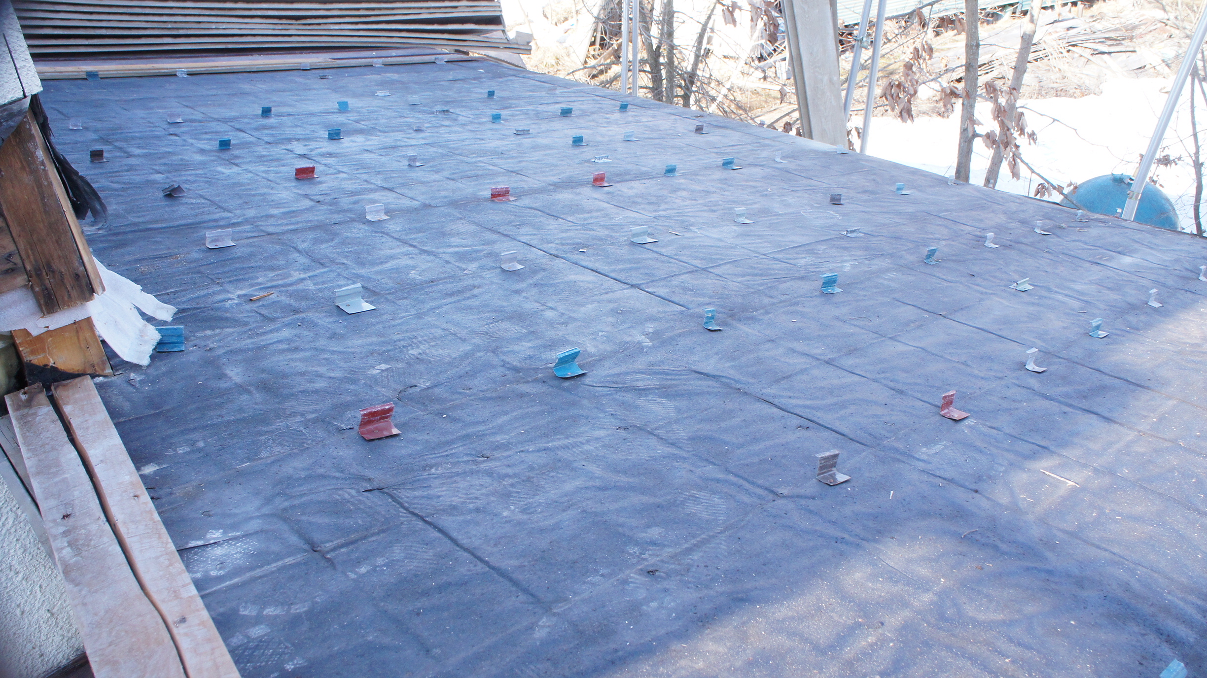 防水紙の 上に 吊り子だけ 残ると 、とりあえず 「イミフ ( 意味不 )」な モダン・アートの 現場の よう ・・・