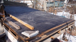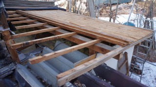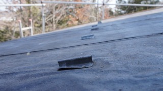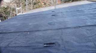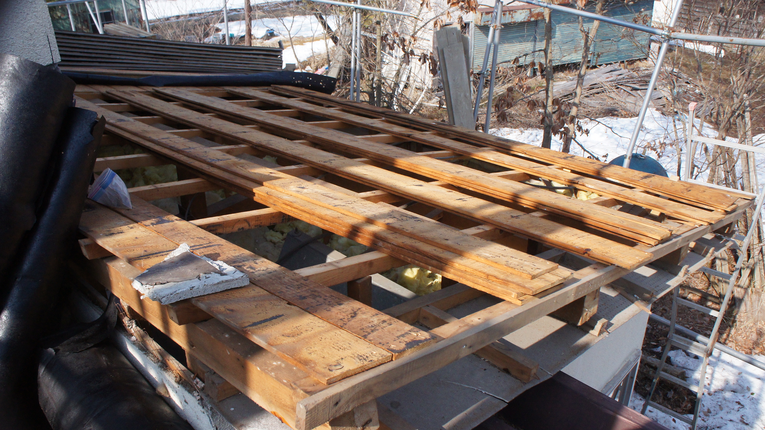 中吊り子を はずし 、防水紙を 巻き上げて 野地板が 現れた状態 ・・・