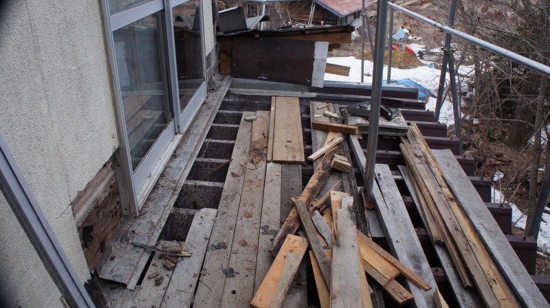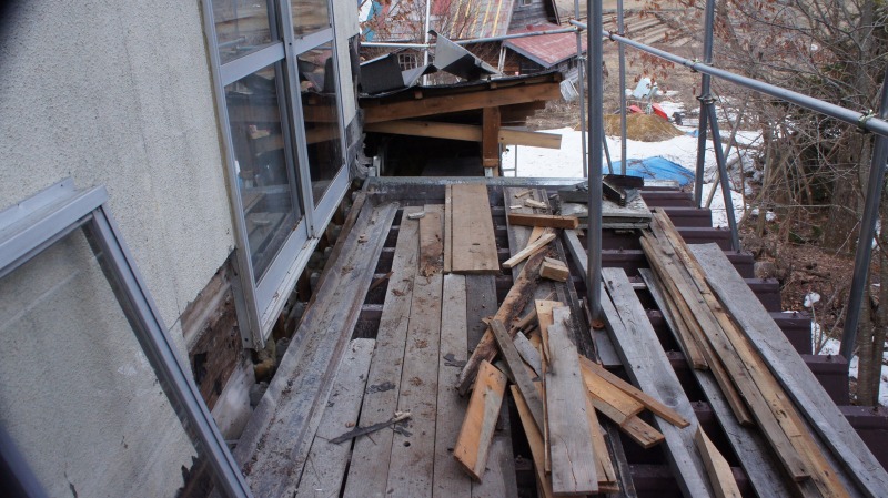 ここの積雪は 厳冬期で 1.5m~2m 、積雪の上部と下部では 密度が違うが 、積雪1mで 約 300㎏/ ㎡ 、1.5mで 450㎏/㎡ 、