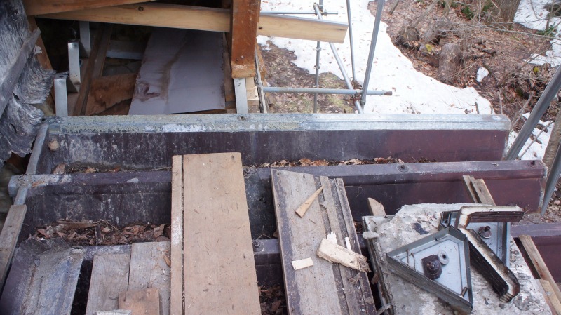 それに 次の 折半部材を かぶせて行き 、面戸板部分を ビスで 固定していった ・・・ からではないかな?・・・と 思う 。