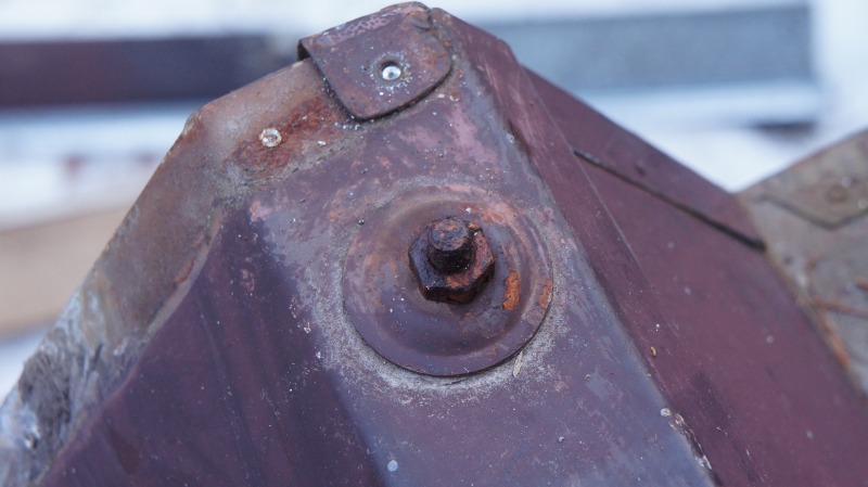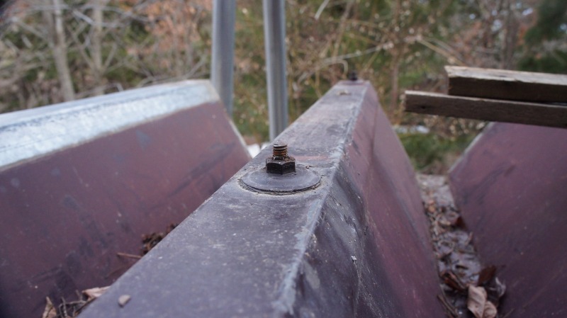 先端2本のボルトは 折半屋根の部材同士を 固定しているだけでいいが 、