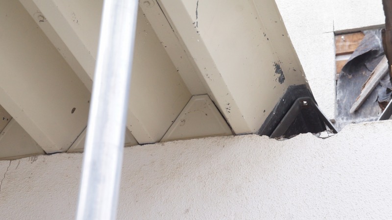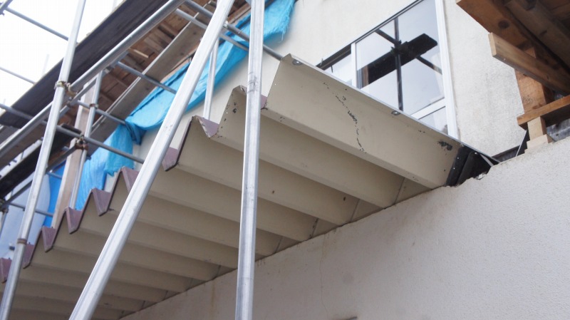この折半屋根の先端半分が 、片持ち梁のように 突き出ているため 、