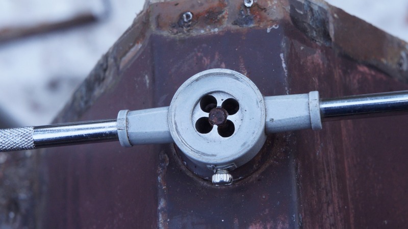 これが かなりの回数 、時間が かかり 、電池も消耗 、最初の 2周くらいは どうしても ナットによって ネジ山を 削って行かねばならないが 、その後は 、あらかじめ ダイスで ネジ山を さらっておいた方が 早いと 思い 、ダイスで やってみたら 、案の定 ・・・ 楽に なった 。