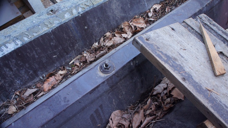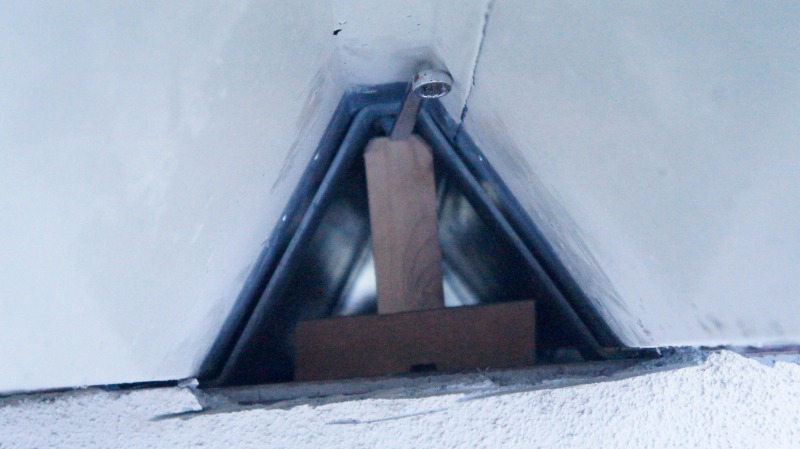 下面の 断面の 隙間に 金属製の面戸板が アルミ・リベットで 固定されている 。
